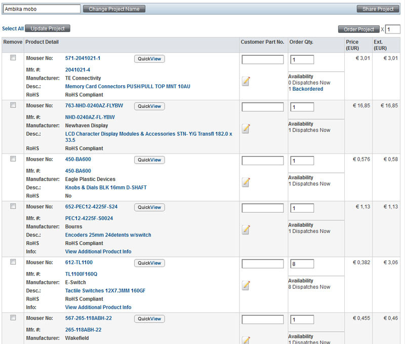 And although they have some fantastic tools to setup part projects and to import BOM’s (bill of materials) etc .. I really need to double-check them all because you’d be lucky if they can deliver them all at once. Or even have them.