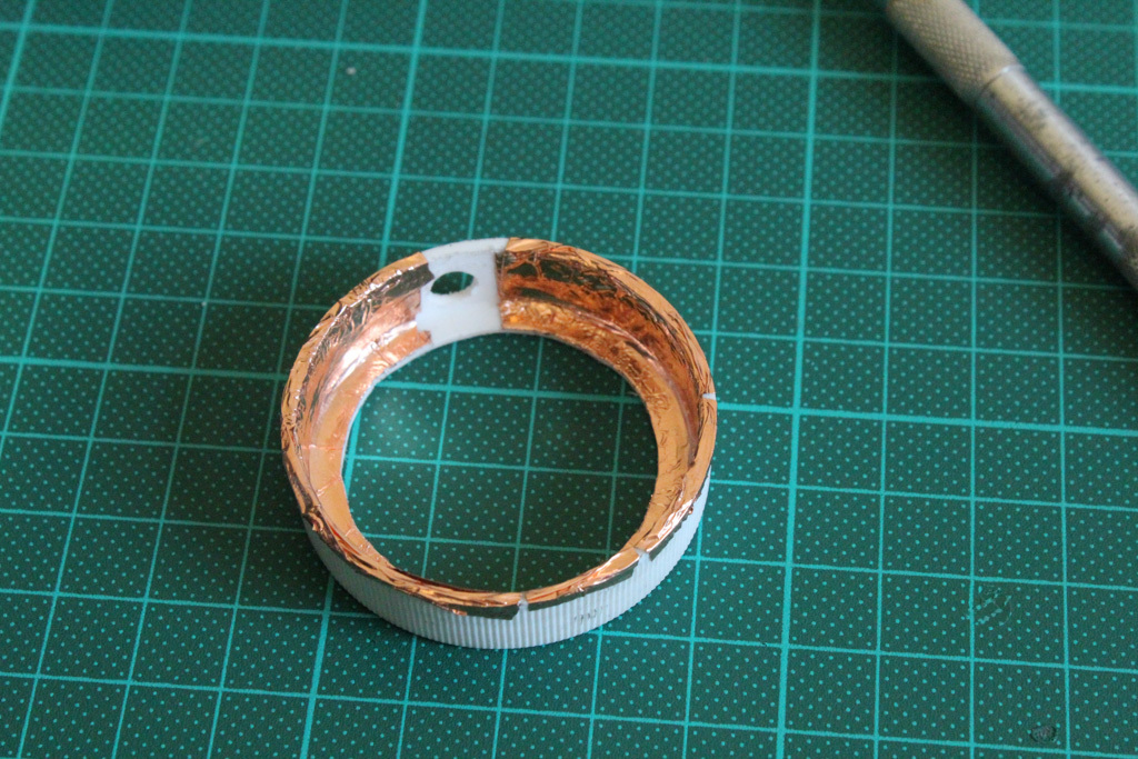 I shielded the whole thing by using a self-adhesive copper sheet to protect against electro-magnetic interference. You can find this material fairly cheap on ebay.