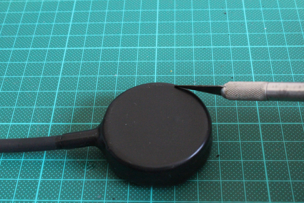 Then I taped off everything with some black electrical tape before I treated the whole mic with a fantastic product called Plasti Dip. I used a thin piece of plastic sheet to temporarily cover the contact side because it would make it easier to remove the Plasti Dip from the Piezo disc later.